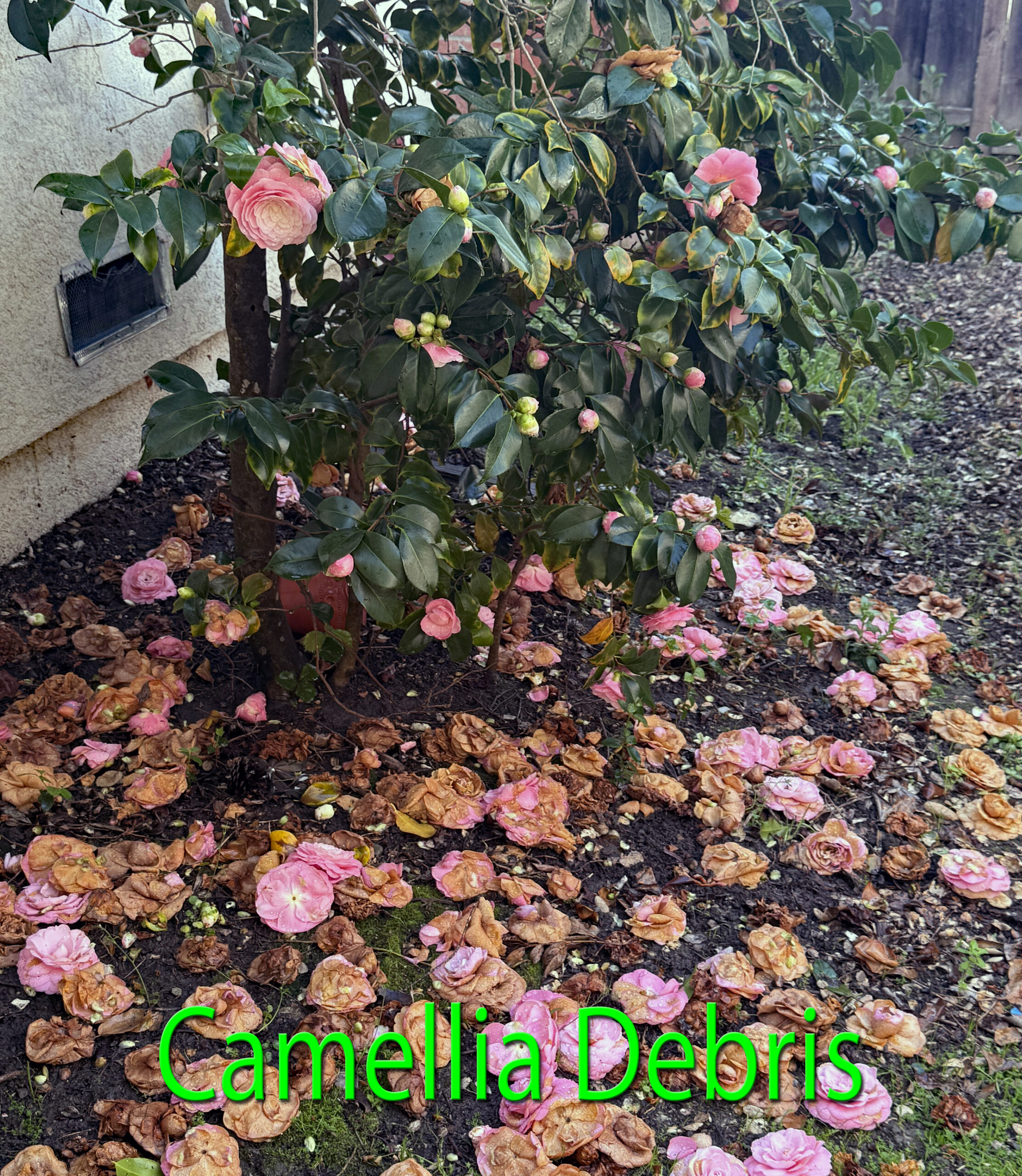 - Camellia Petal Blight causes the flower to rot at the center. To prevent this disease, remove all debris, especially old flowers. Since no chemical treatments are available, good sanitation practices are essential. Additionally, light cultivation around the plants can disturb the spore-producing structures on the ground.